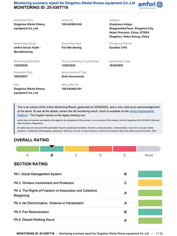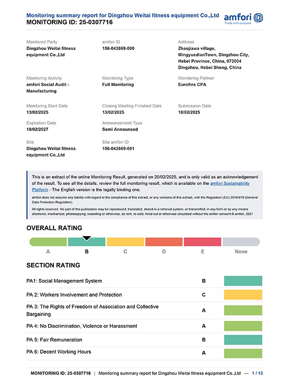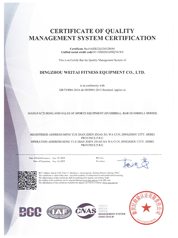 ООО Динчжоу Вэйтай Тренажёры — китайский производитель фитнес-оборудования, основанный в 2003 году, профессионально производит различные гантели, гири, штанги, грифы для штанг, диски для штанг, стойки, аксессуары для фитнеса и индивидуальные продукты. Компания интегрирует проектирование, научные исследования, производство, маркетинг, OEM & ODM в единое целое, обладает передовыми производственными процессами, включая литье, токарную обработку, гальванизацию, резиновое покрытие, пластиковое покрытие, покраску, выдувное формование, заливку, напыление порошка. Компания имеет строгую систему управления качеством, уделяет большое внимание научным исследованиям и разработкам, уже получила более 20 патентов.